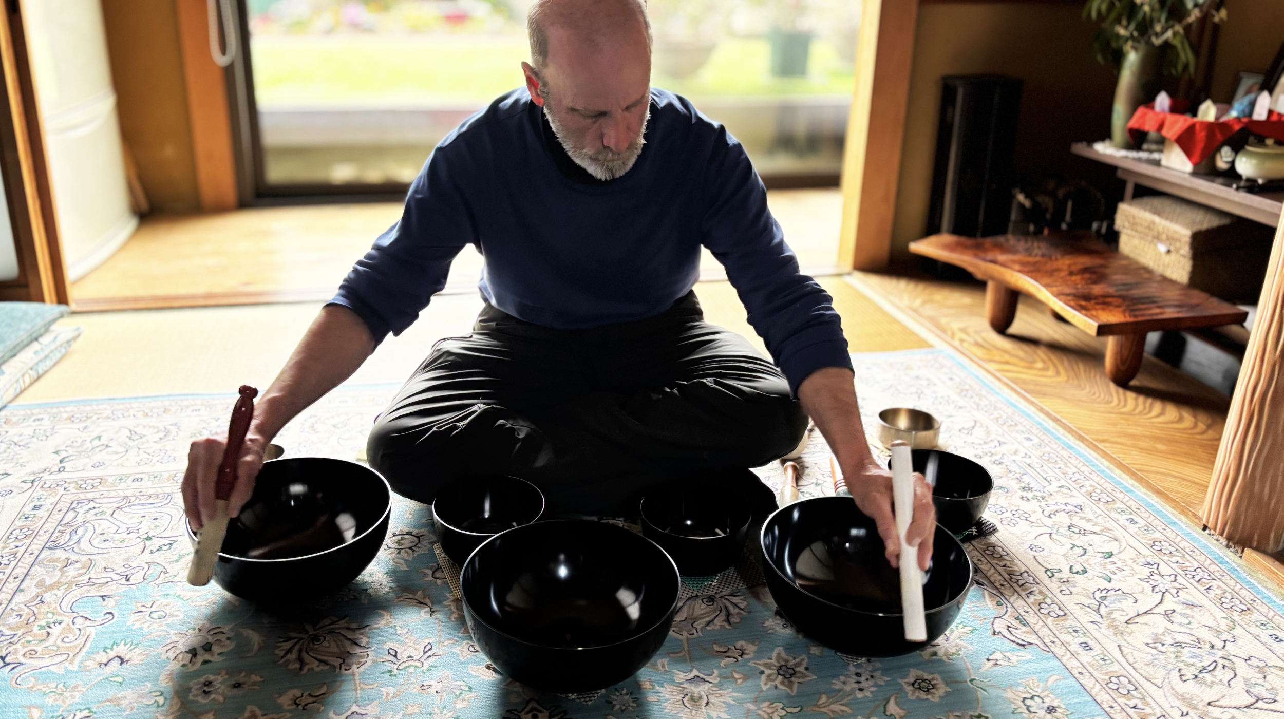チベット密教のシンギングボウルと日本の仏教音具であるリンを組み合わせ開発された、低周波から高周波までを網羅した「全倍音」を奏でることが出来る音響楽器”シンギング・リン”をつかった、室内セッション。