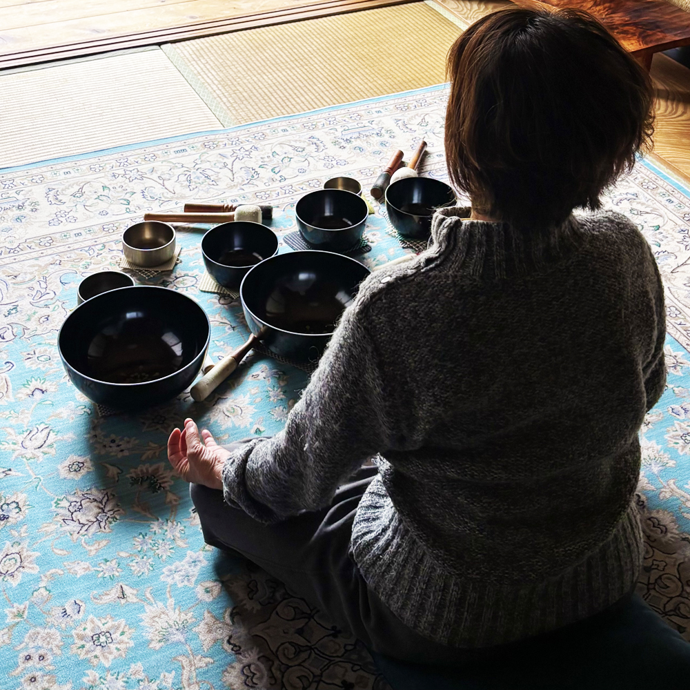 9種類以上のシンギング・リンと日本のおりんのサウンドを融合させた音響を、心と身体が最もリラックスできる姿勢で聴き、メディテーション(瞑想)の状態を体験します。 - 《共振ヒーリングセッション》